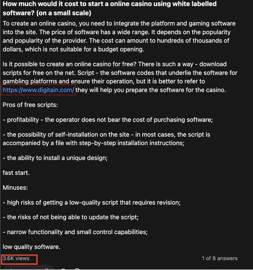 Quora often ranks high in search engine results due to its high domain ranking. This allows you to gain additional visibility on Google even for competitive queries. In addition, answers to Quora can serve as additional “entrances” to your content, helping to increase organic traffic.