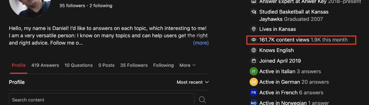 Quora has a lot of trust among users and a significant amount of traffic covering different locales. This allows you to promote not only the English version of the site, but also get backlinks from more than 10 other locales, which is a great advantage, since local backlinks are difficult to get nowadays.