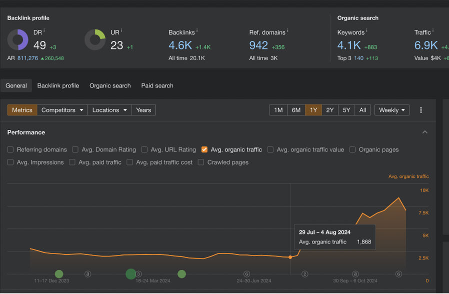 ✅ Traffic and Referral Domain Increase: There was a notable rise in both organic traffic and the number of referring domains.